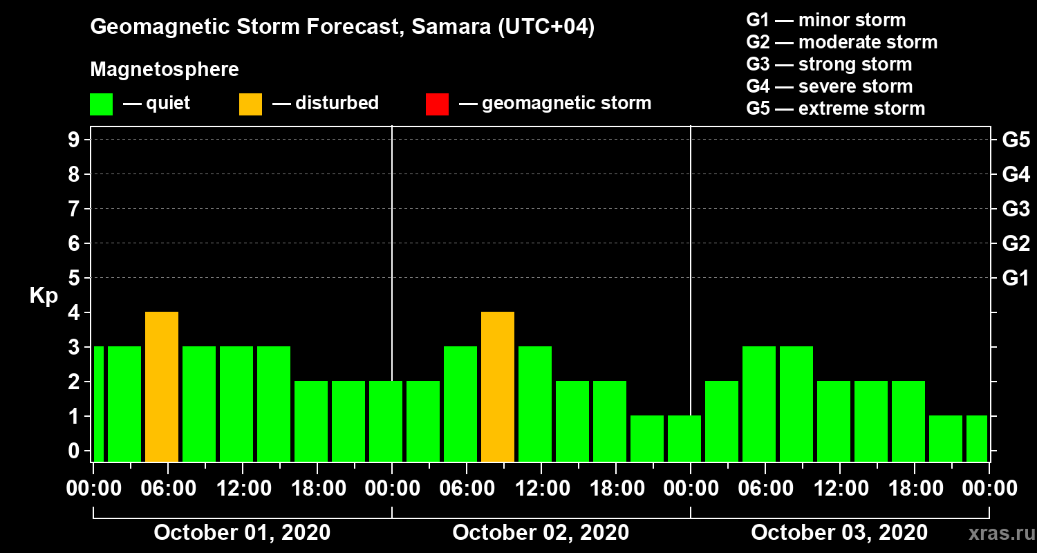 Geomagnetic storm forecast in Samara for Oct 01, 2020