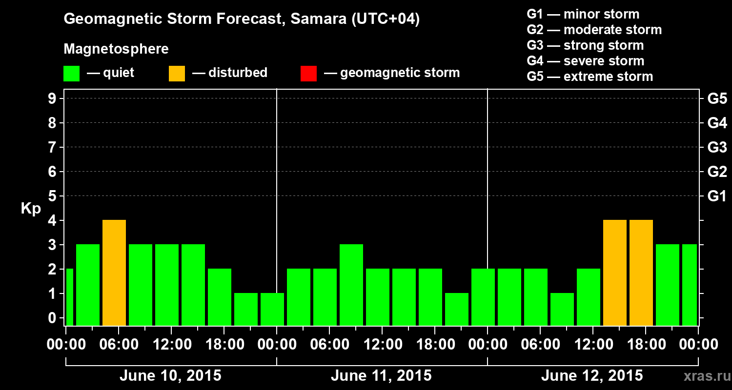 Geomagnetic storm forecast in Samara for Jun 10, 2015