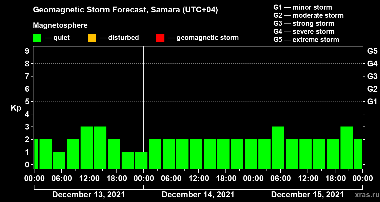 Geomagnetic activity forecast in Samara — Dec 13, 2021