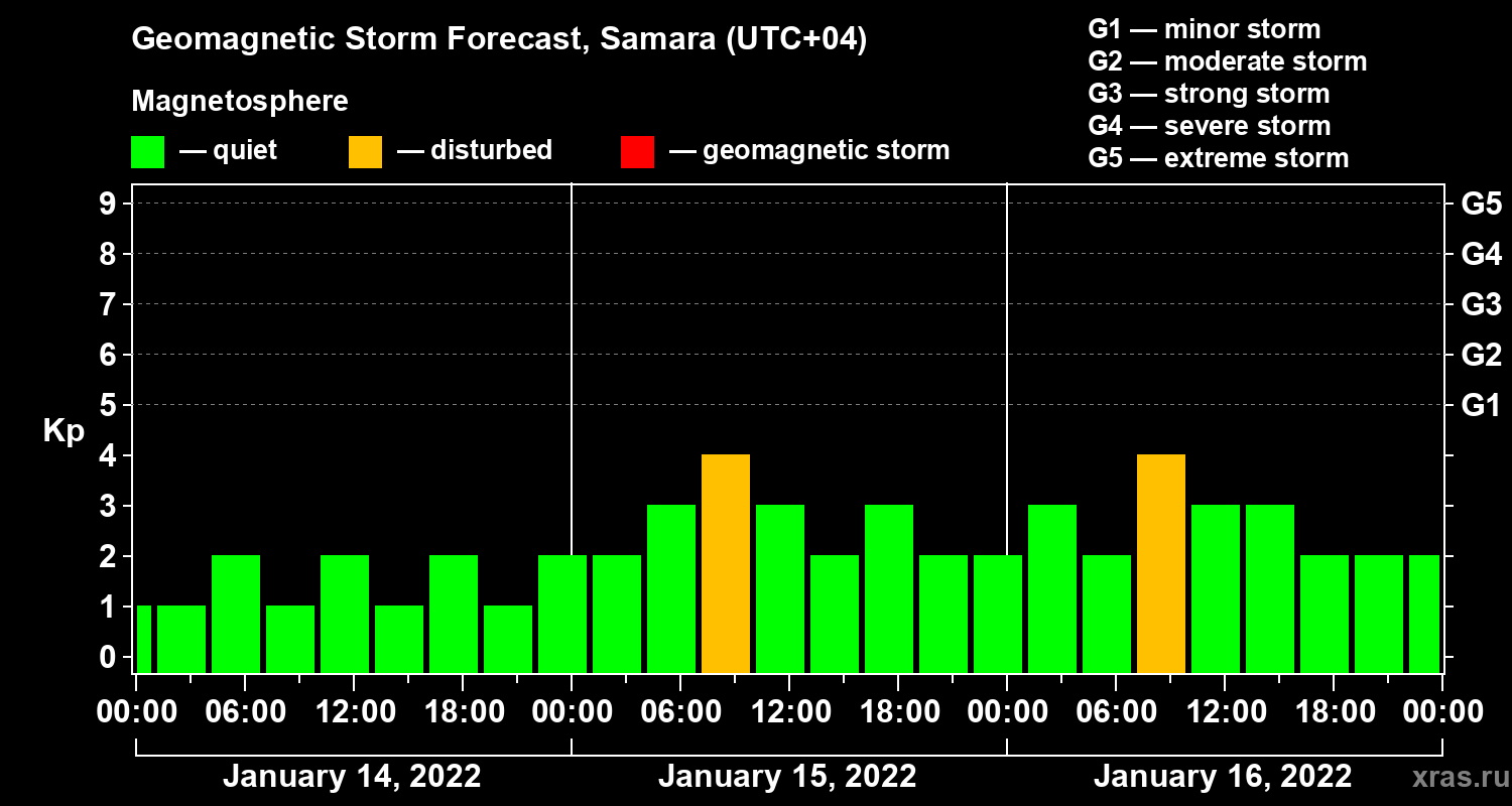 Geomagnetic storm forecast in Samara for Jan 14, 2022