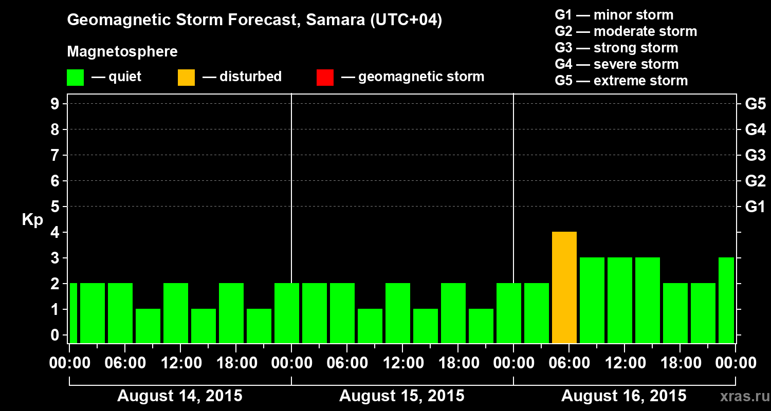 Geomagnetic storm forecast in Samara for Aug 14, 2015
