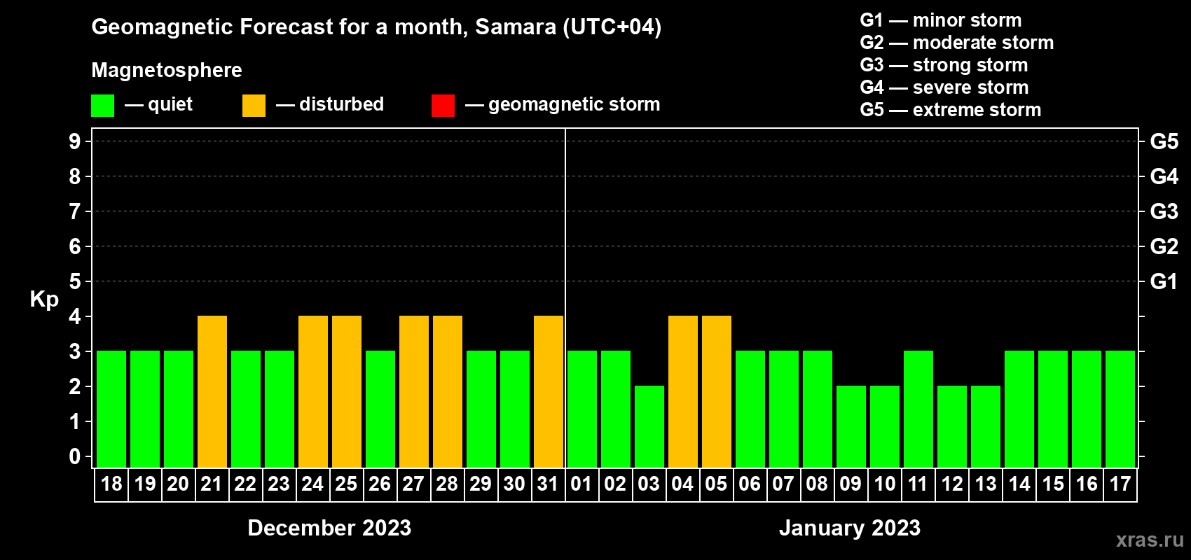 Geomagnetic activity forecast in Samara — Dec 18, 2022