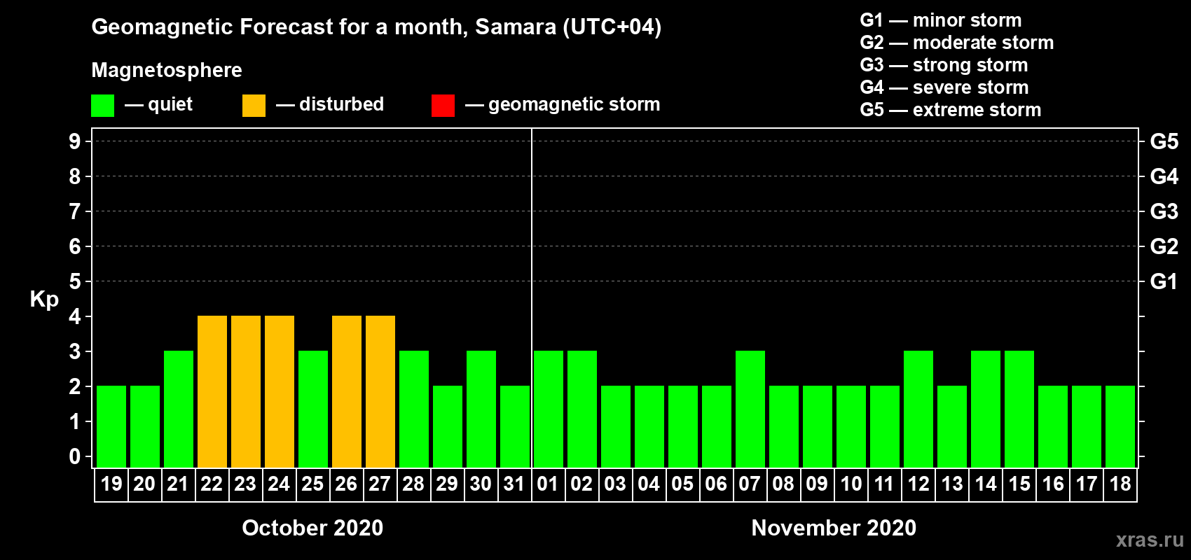 Geomagnetic activity forecast in Samara — Oct 19, 2020