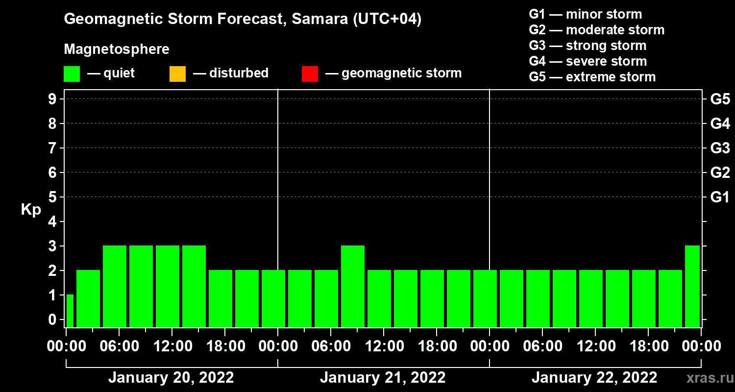 Geomagnetic activity forecast in Samara — Jan 20, 2022