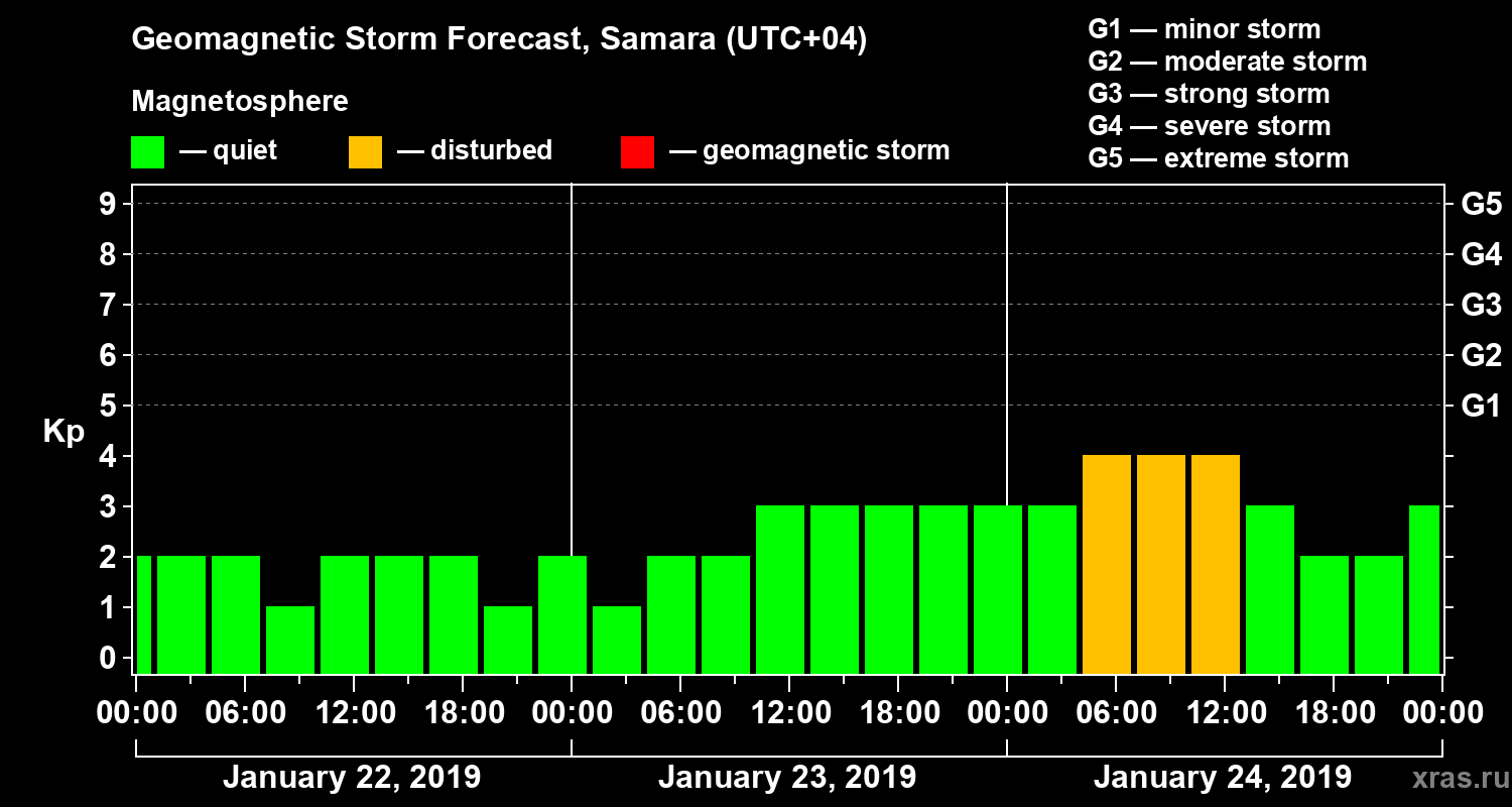 Geomagnetic activity forecast in Samara — Jan 22, 2019