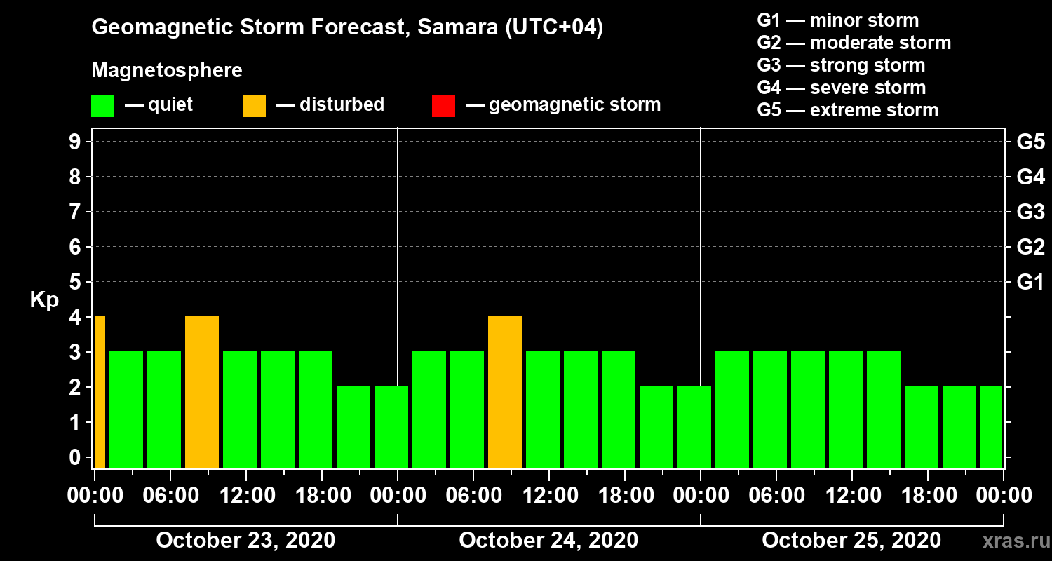 Geomagnetic storm forecast in Samara for Oct 23, 2020
