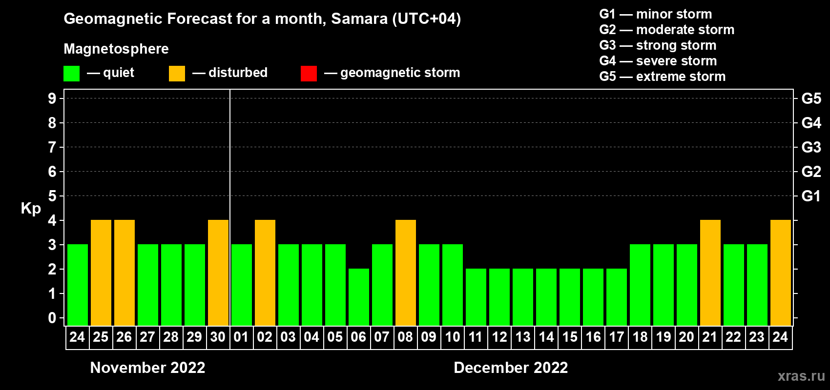 Geomagnetic activity forecast in Samara — Nov 24, 2022