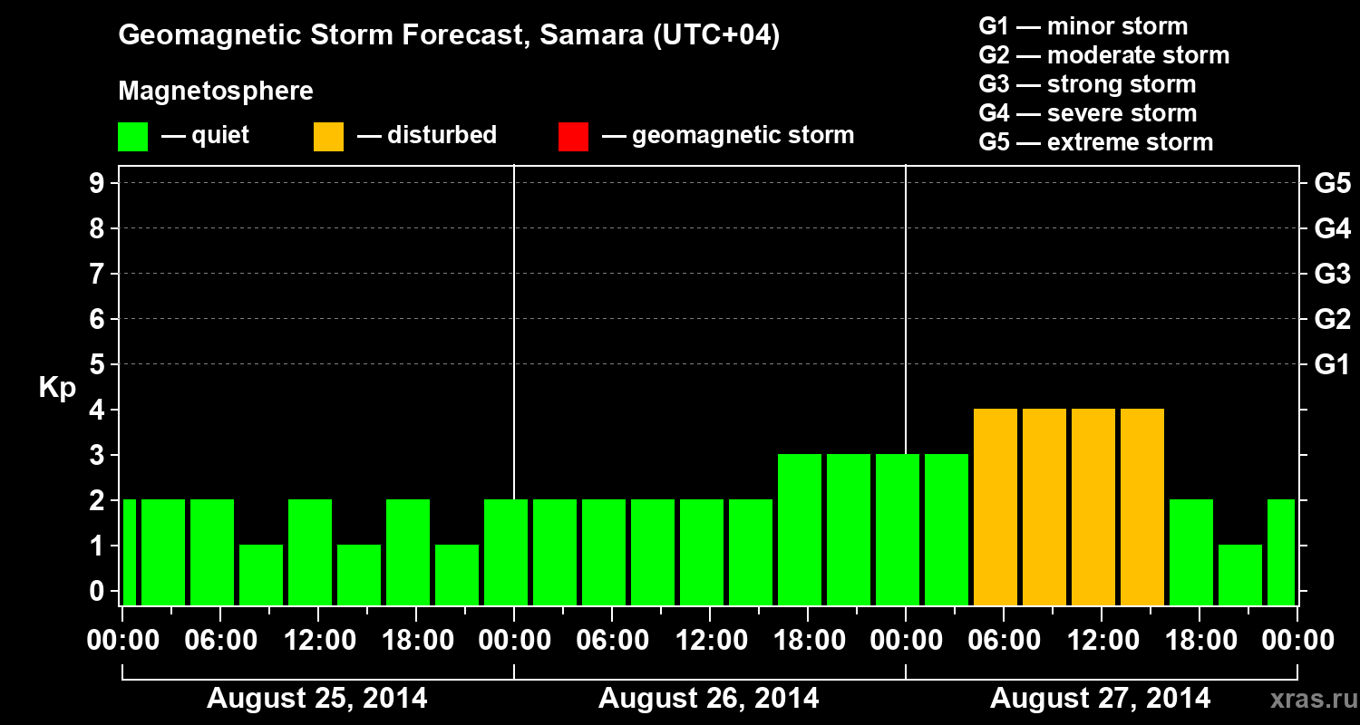 Geomagnetic activity forecast in Samara — Aug 25, 2014