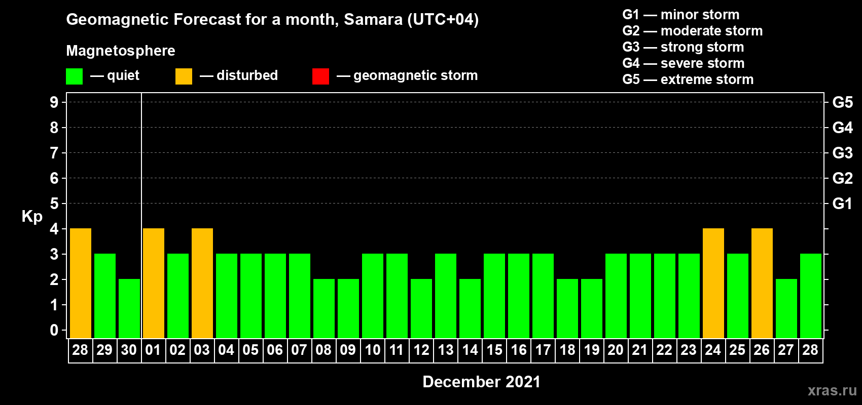 Geomagnetic activity forecast in Samara — Nov 28, 2021