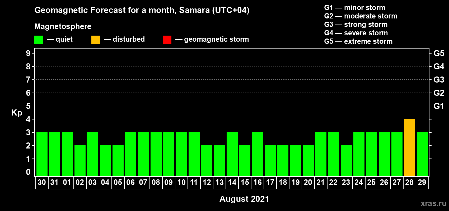Geomagnetic activity forecast in Samara — Jul 30, 2021