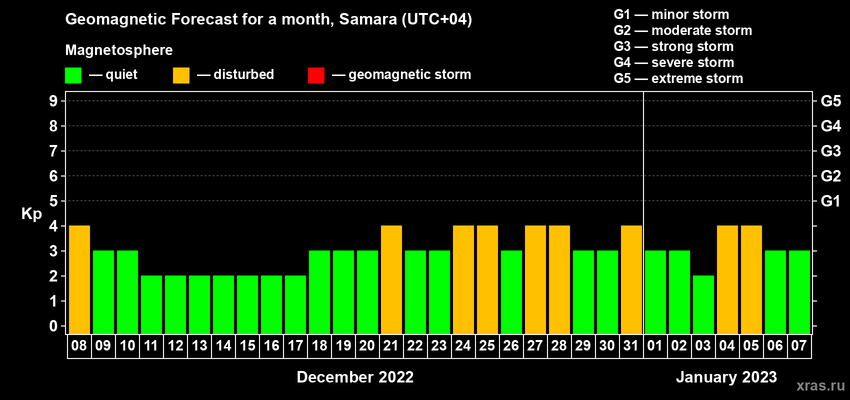 Geomagnetic storm forecast in Samara for Dec 08, 2022
