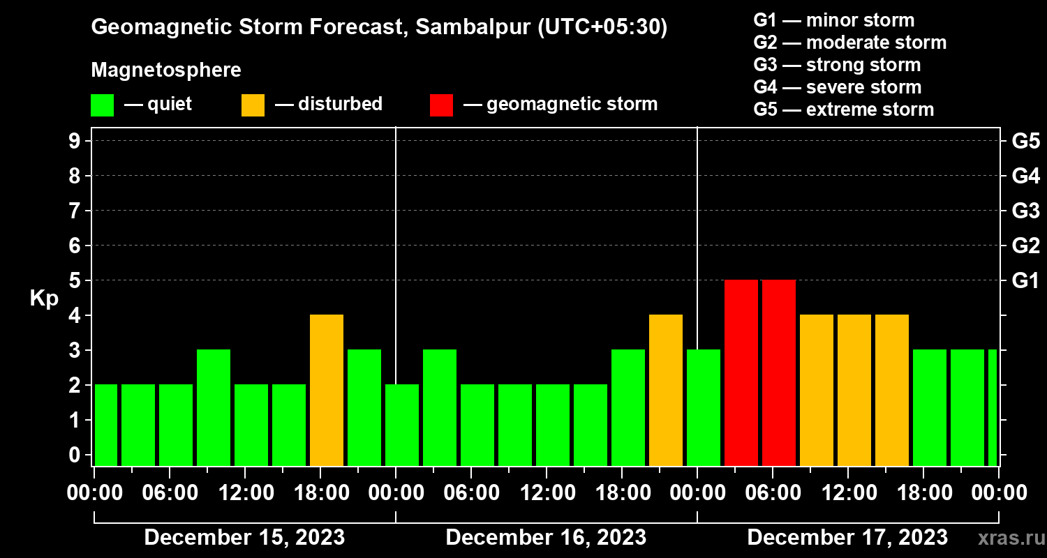 Geomagnetic storm forecast in Sambalpur for Dec 15, 2023