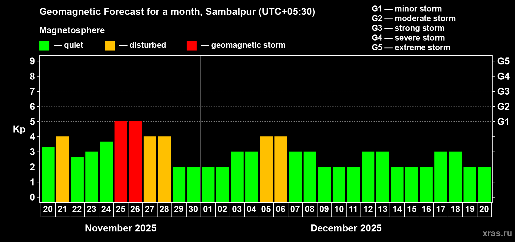 Geomagnetic storm forecast in Sambalpur for Nov 20, 2025