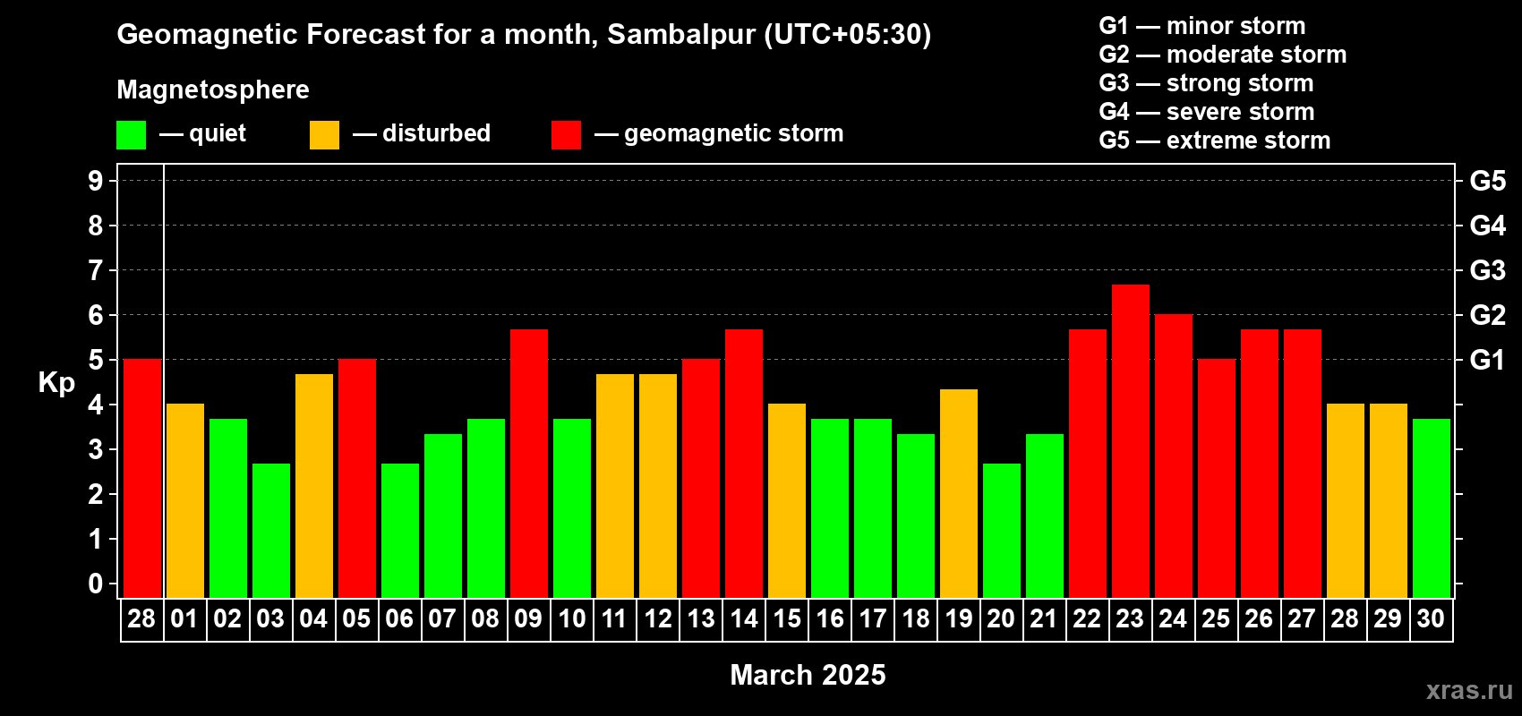 Geomagnetic storm forecast in Sambalpur for Feb 28, 2025