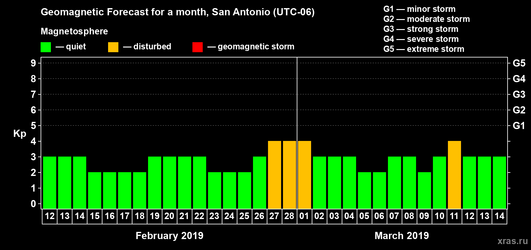 Geomagnetic storm forecast in San Antonio for Feb 12, 2019