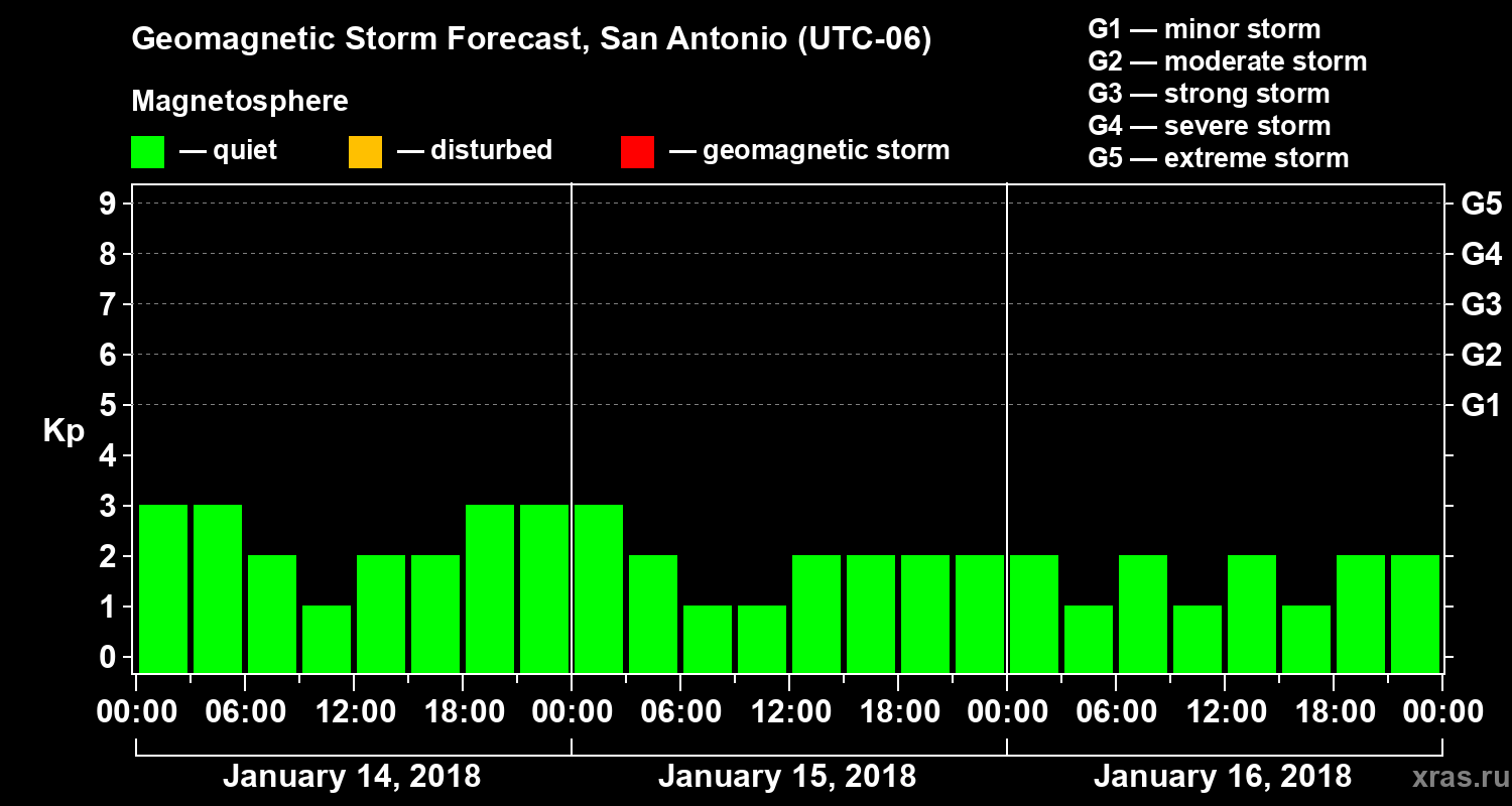 Geomagnetic storm forecast in San Antonio for Jan 14, 2018