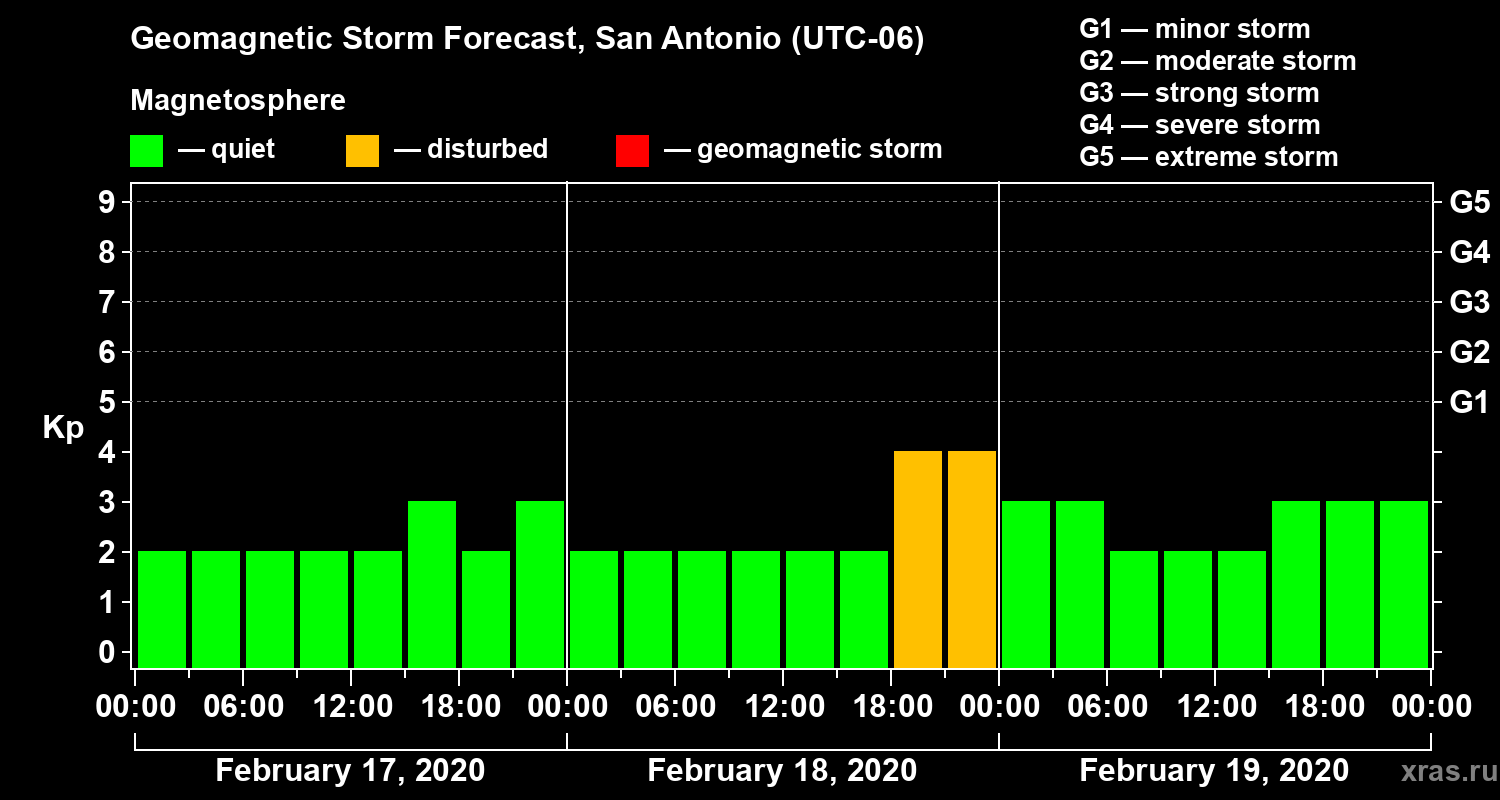 Geomagnetic storm forecast in San Antonio for Feb 17, 2020