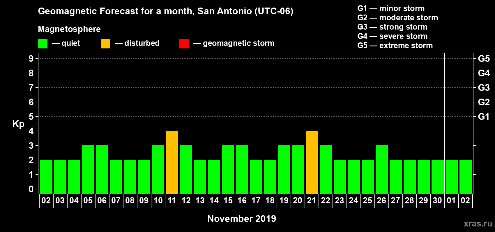 Geomagnetic storm forecast in San Antonio for Nov 02, 2019