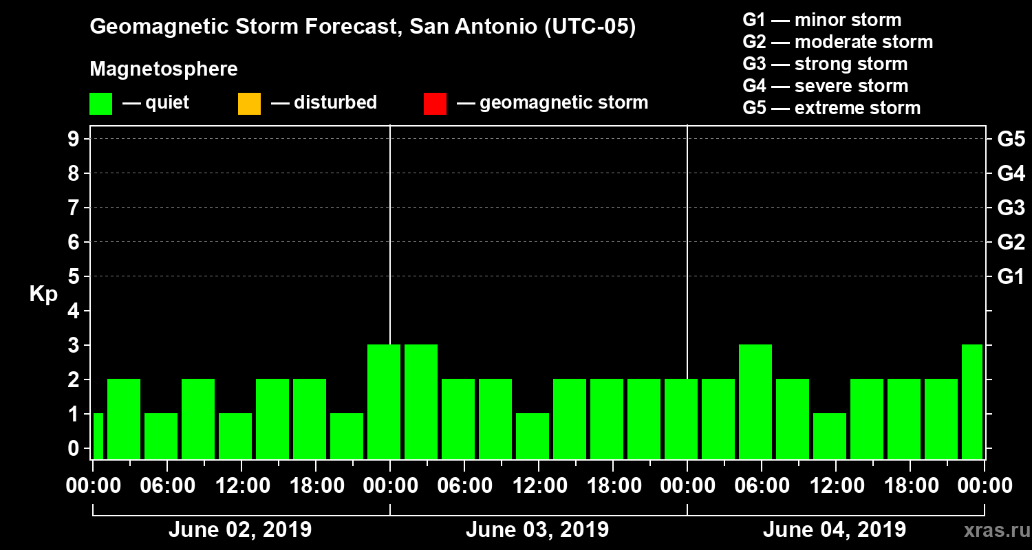 Geomagnetic storm forecast in San Antonio for Jun 02, 2019