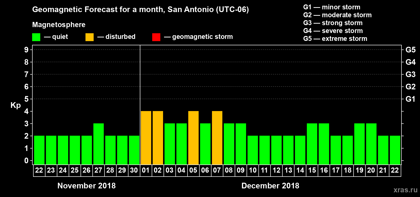 Geomagnetic storm forecast in San Antonio for Nov 22, 2018