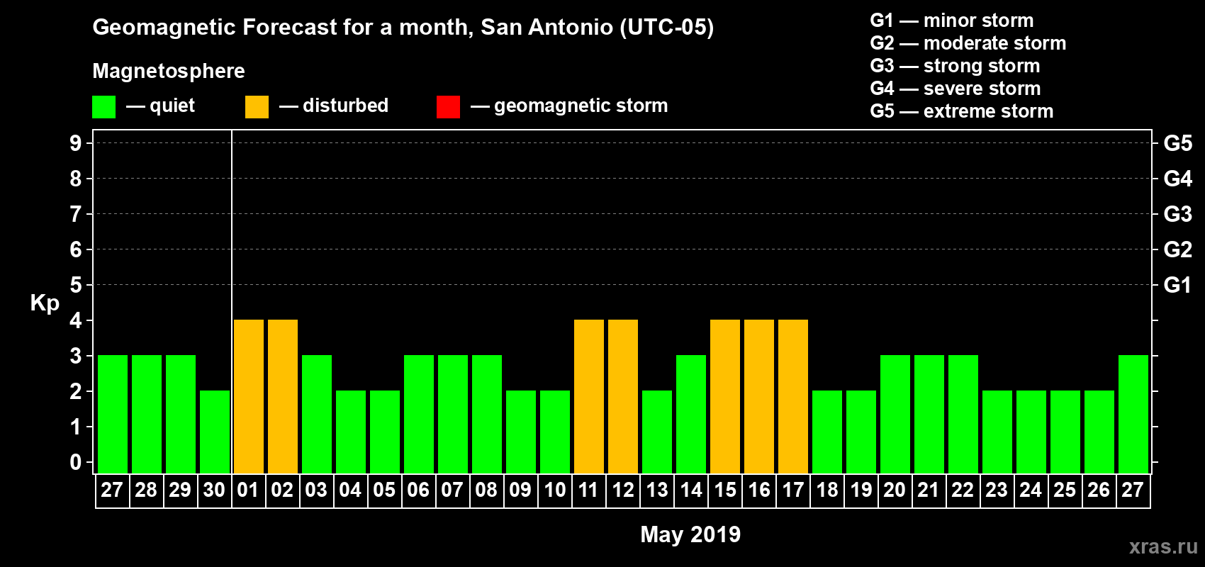 Geomagnetic storm forecast in San Antonio for Apr 27, 2019