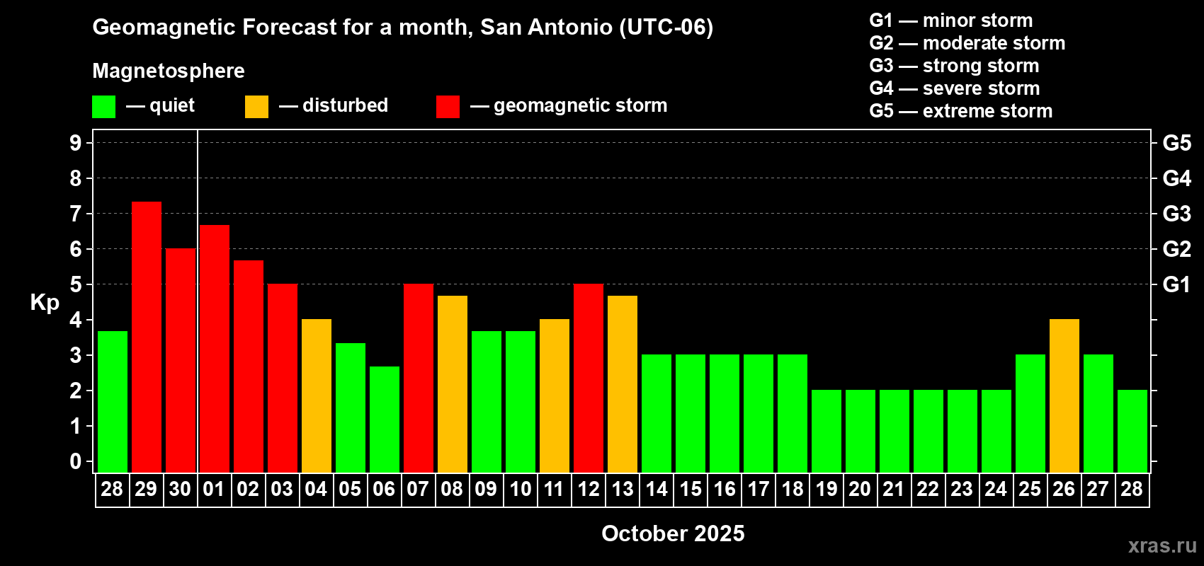 Geomagnetic storm forecast in San Antonio for Sep 28, 2025