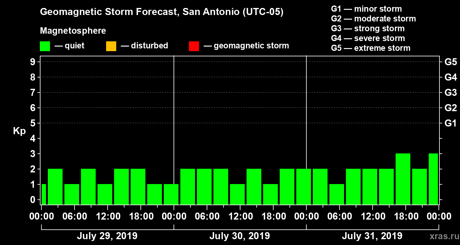 Geomagnetic storm forecast in San Antonio for Jul 29, 2019