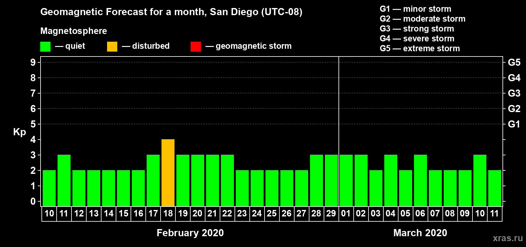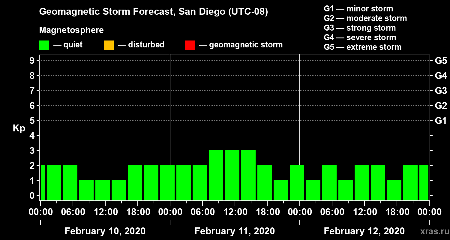 Geomagnetic storm forecast in San Diego for Feb 10, 2020