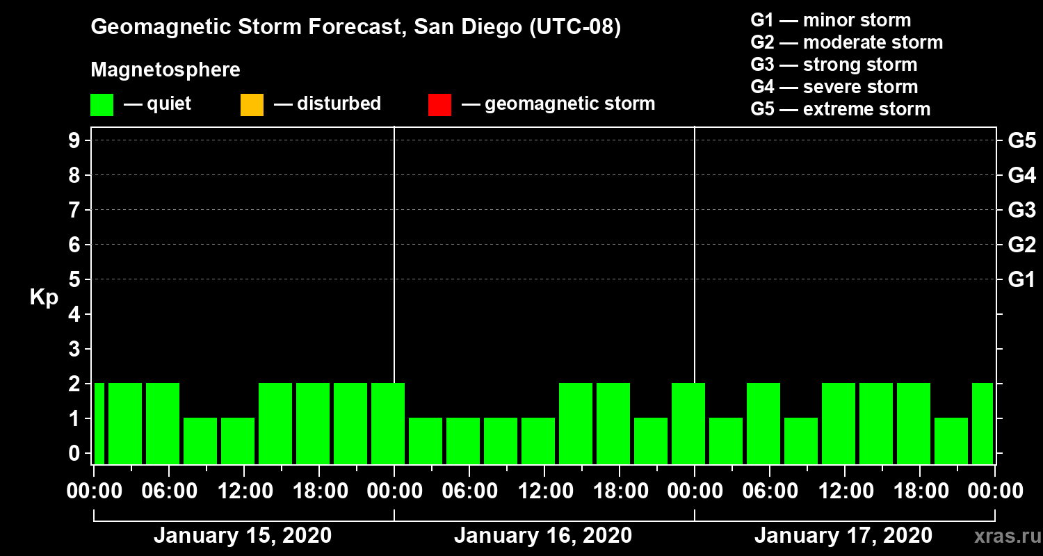 Geomagnetic storm forecast in San Diego for Jan 15, 2020