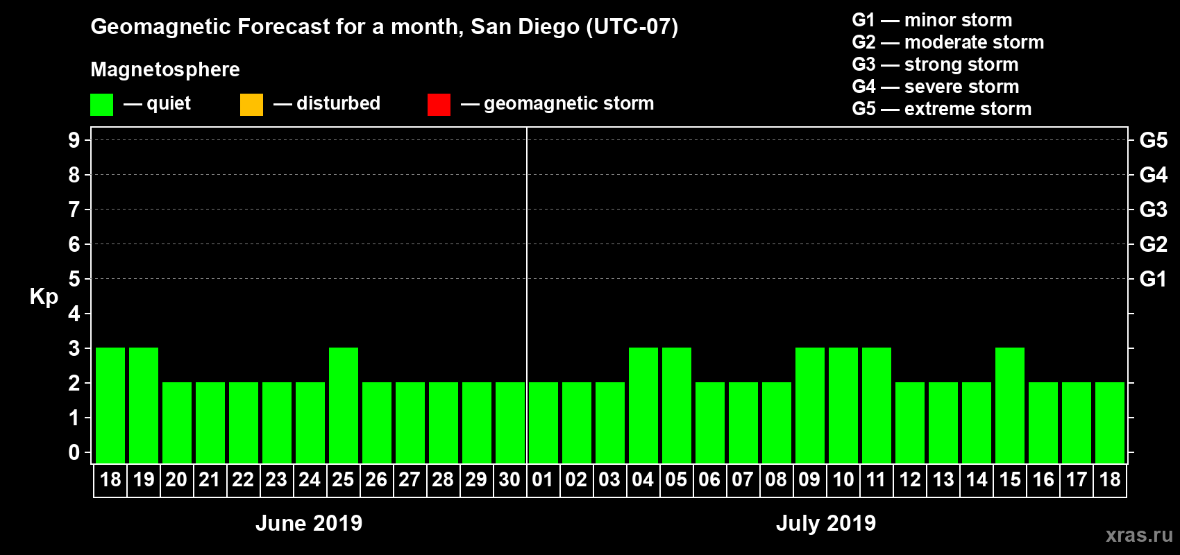 Geomagnetic storm forecast in San Diego for Jun 18, 2019