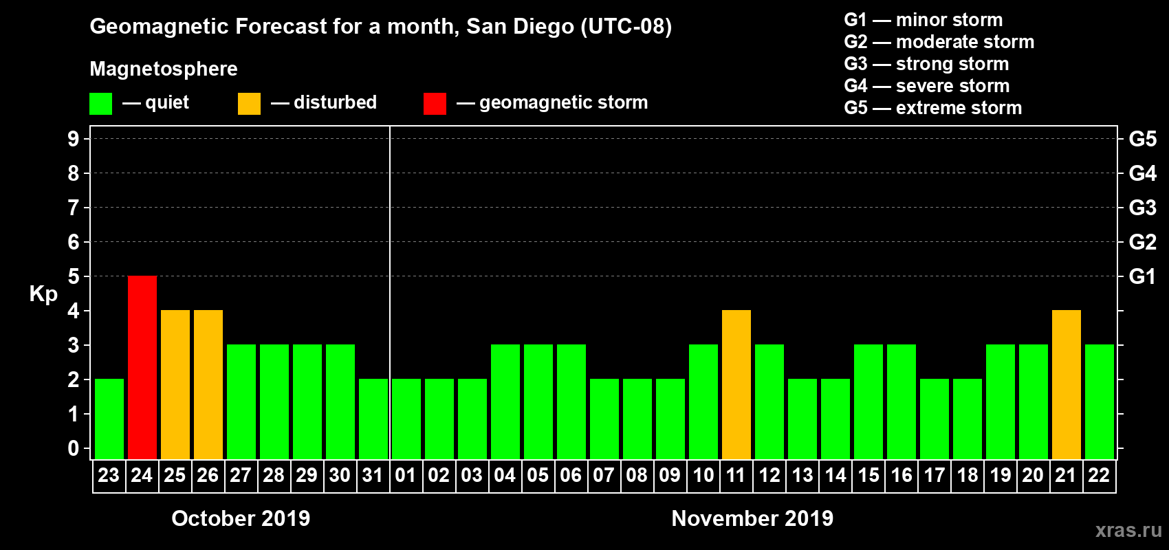 Geomagnetic storm forecast in San Diego for Oct 23, 2019