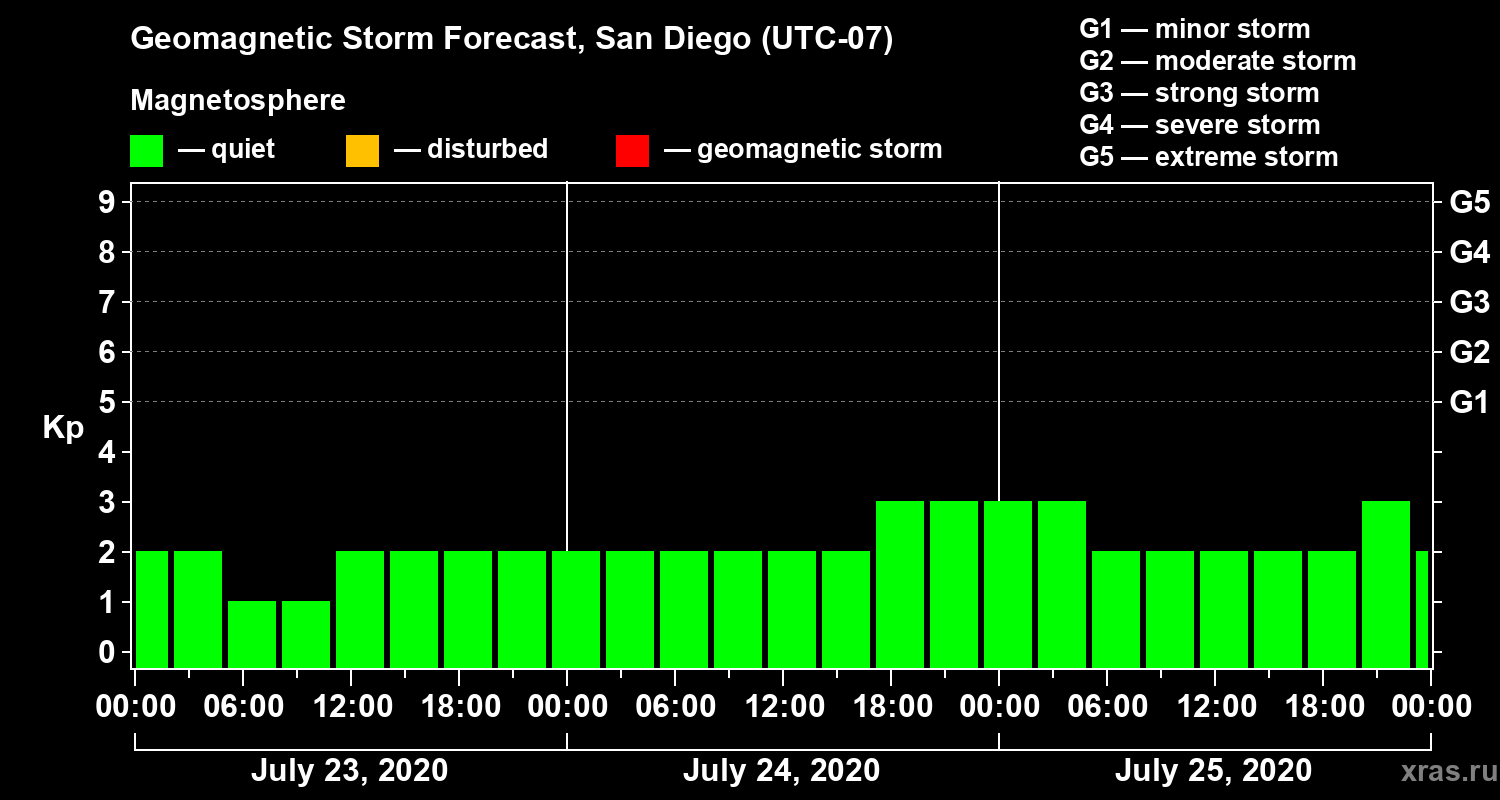 Geomagnetic storm forecast in San Diego for Jul 23, 2020