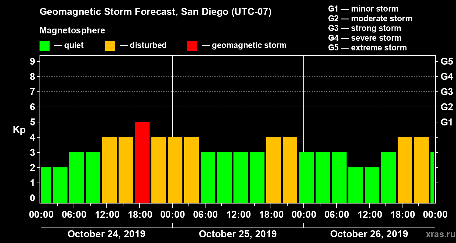 Geomagnetic storm forecast in San Diego for Oct 24, 2019