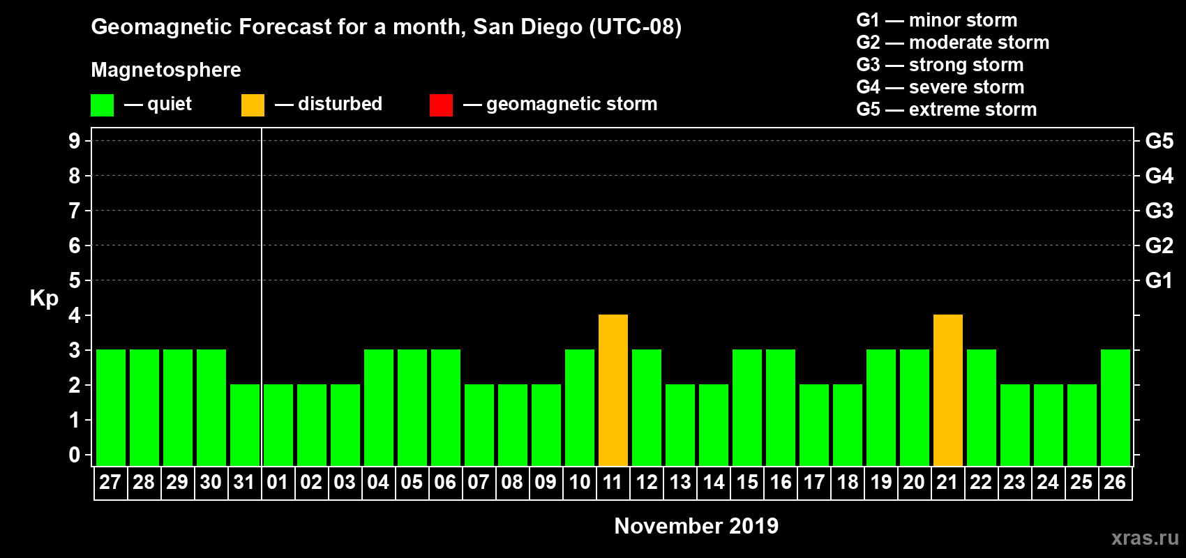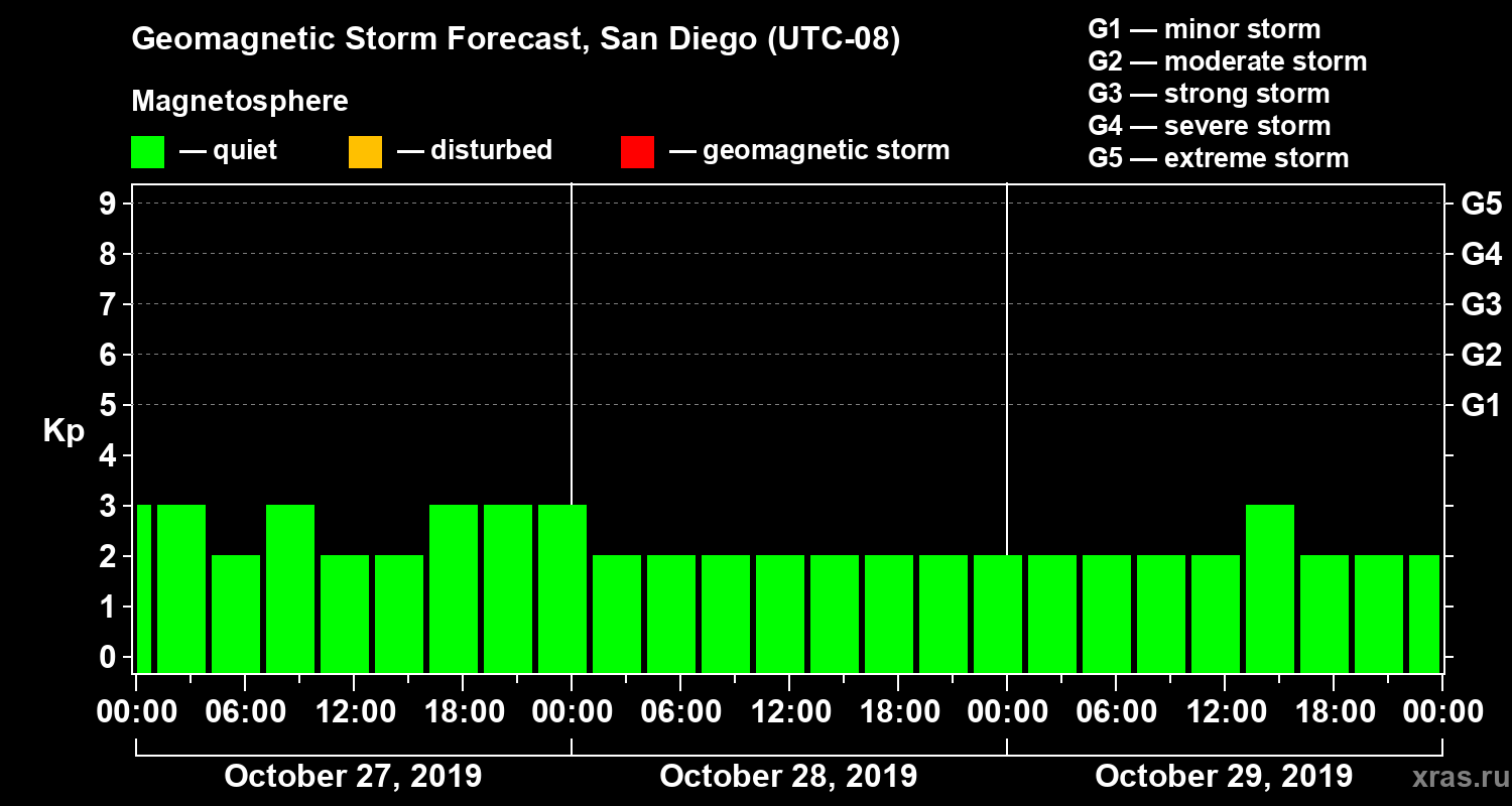 Geomagnetic storm forecast in San Diego for Oct 27, 2019
