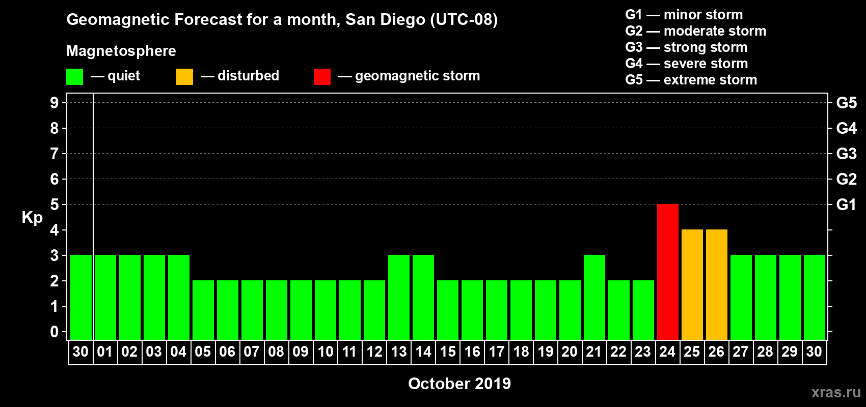 Geomagnetic storm forecast in San Diego for Sep 30, 2019