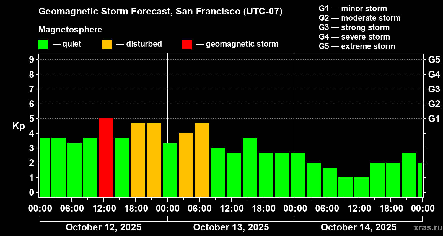 Geomagnetic storm forecast in San Francisco for Oct 12, 2025