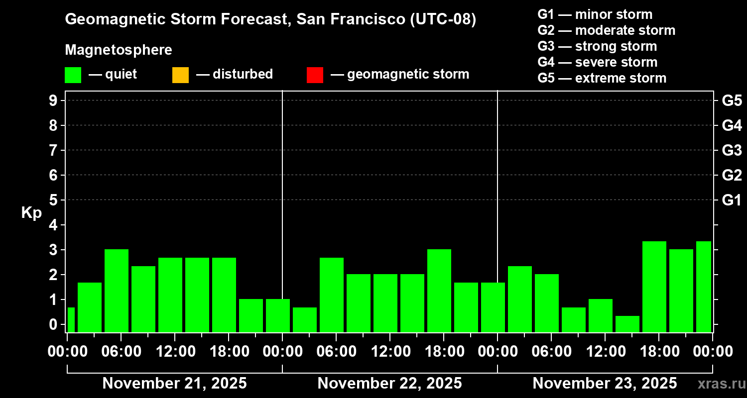 Geomagnetic storm forecast in San Francisco for Nov 21, 2025