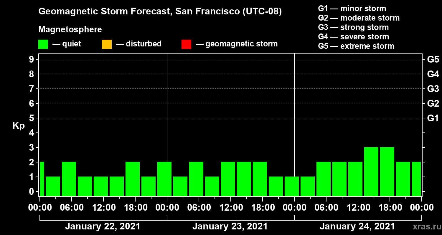 Geomagnetic activity forecast in San Francisco — Jan 22, 2021