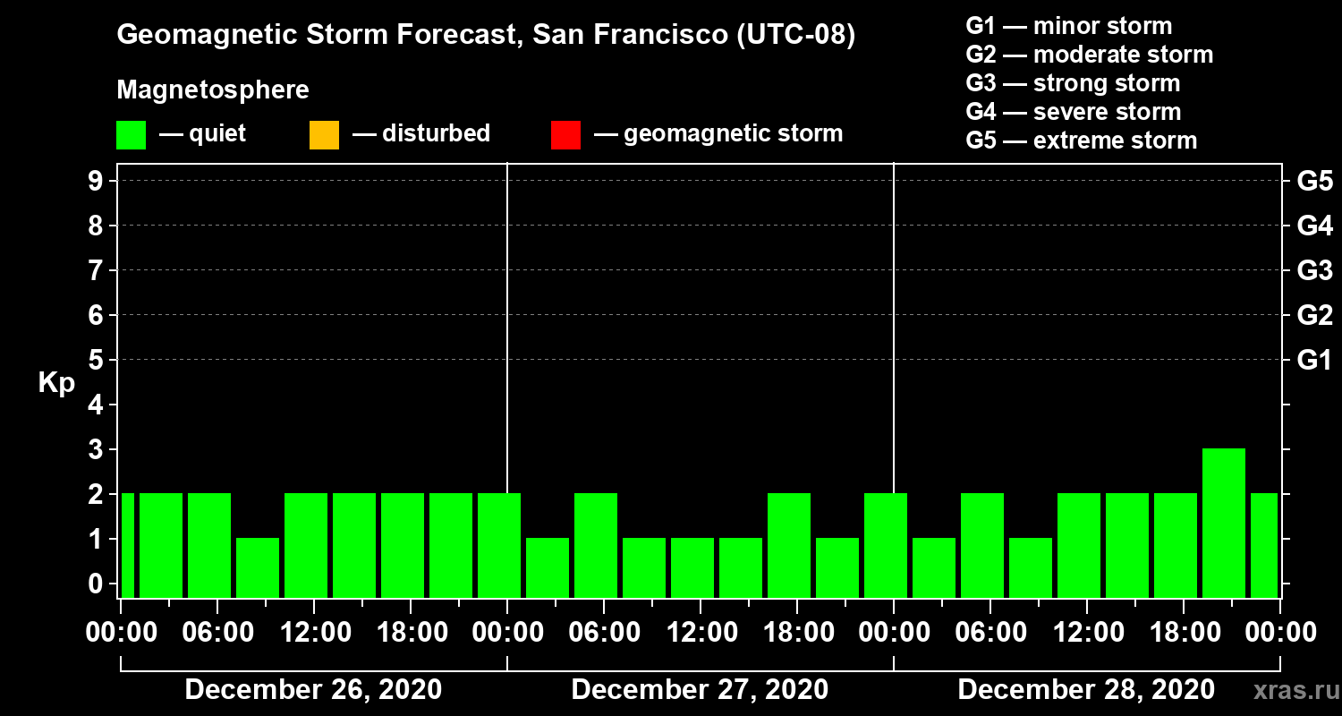 Geomagnetic activity forecast in San Francisco — Dec 26, 2020