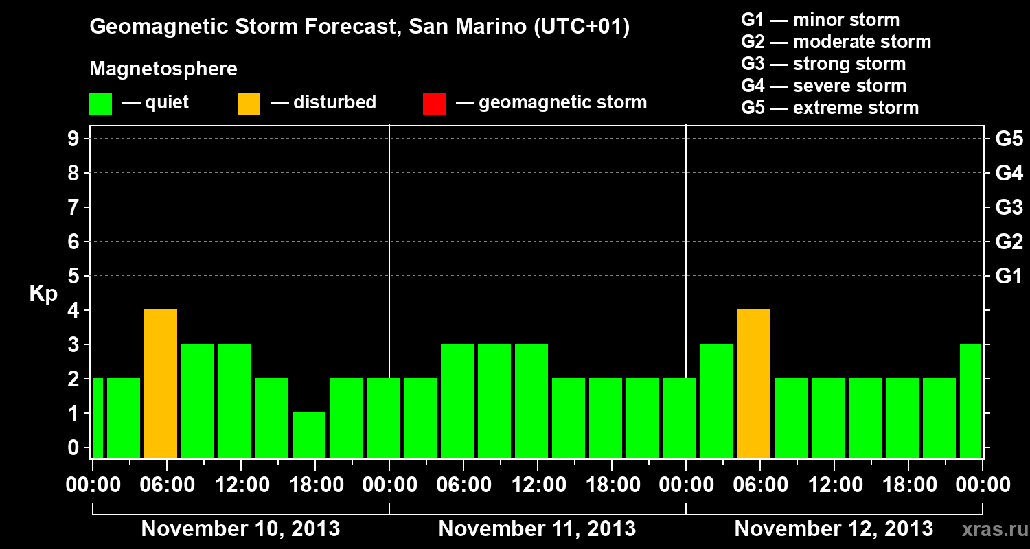 Geomagnetic storm forecast in San Marino for Nov 10, 2013