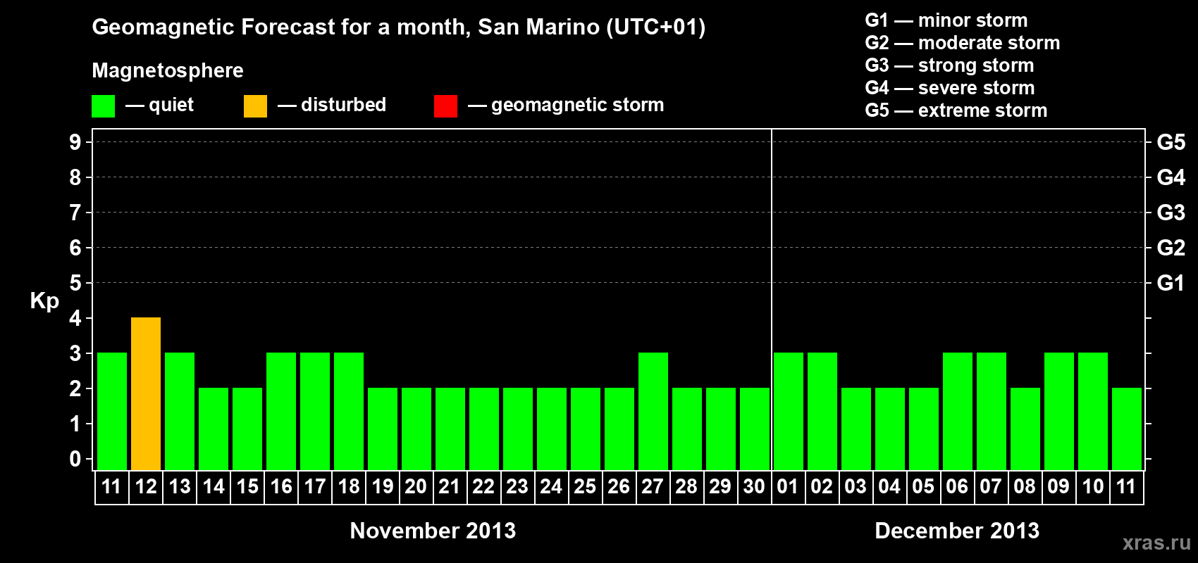 Geomagnetic storm forecast in San Marino for Nov 11, 2013