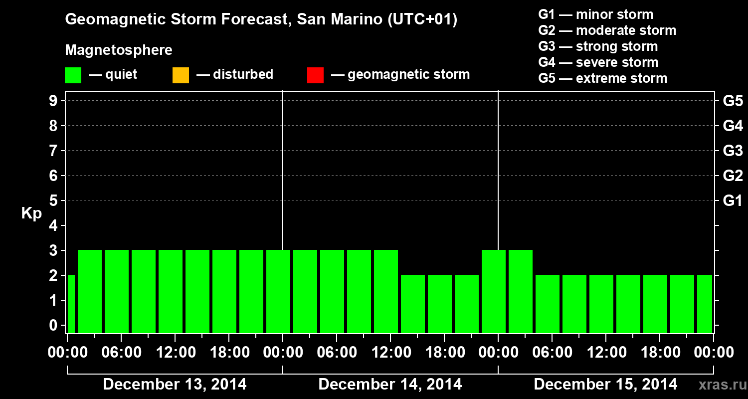 Geomagnetic storm forecast in San Marino for Dec 13, 2014