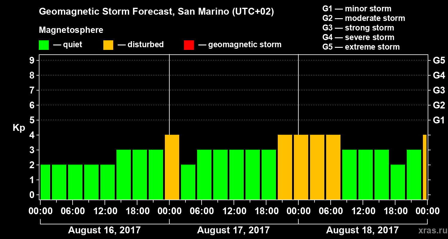 Geomagnetic storm forecast in San Marino for Aug 16, 2017
