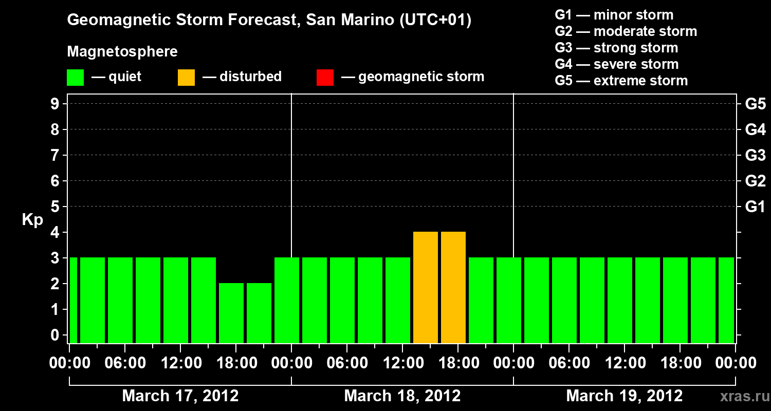 Geomagnetic storm forecast in San Marino for Mar 17, 2012