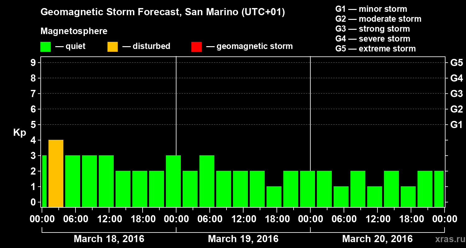 Geomagnetic storm forecast in San Marino for Mar 18, 2016