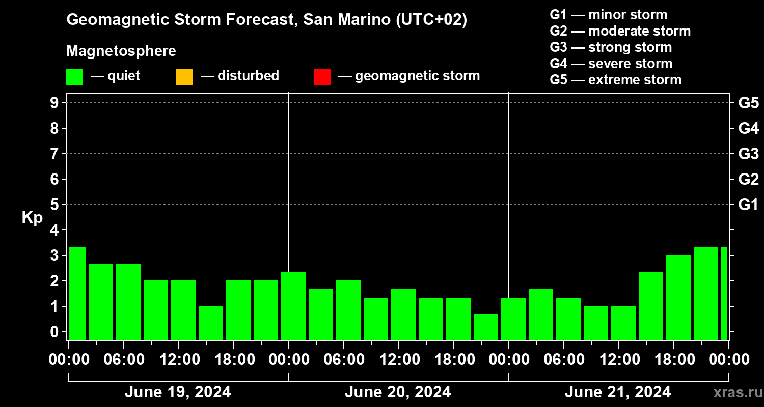 Geomagnetic storm forecast in San Marino for Jun 19, 2024