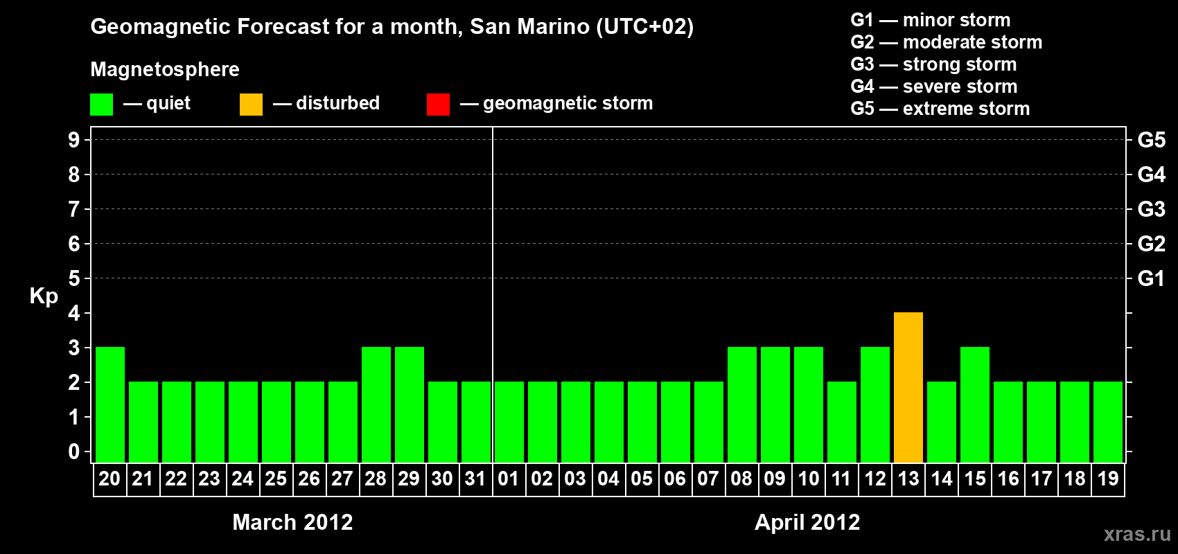 Geomagnetic storm forecast in San Marino for Mar 20, 2012