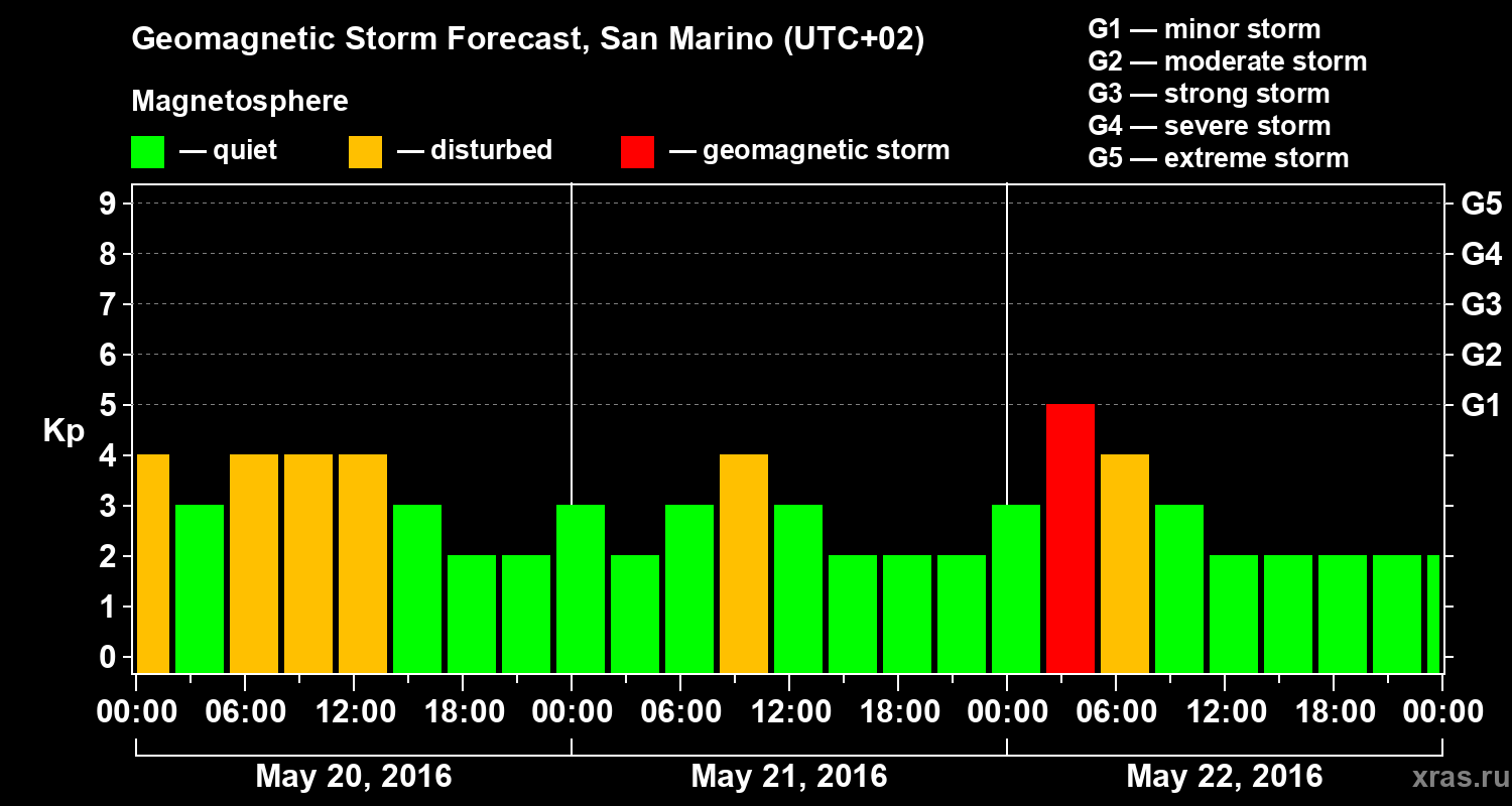 Geomagnetic storm forecast in San Marino for May 20, 2016