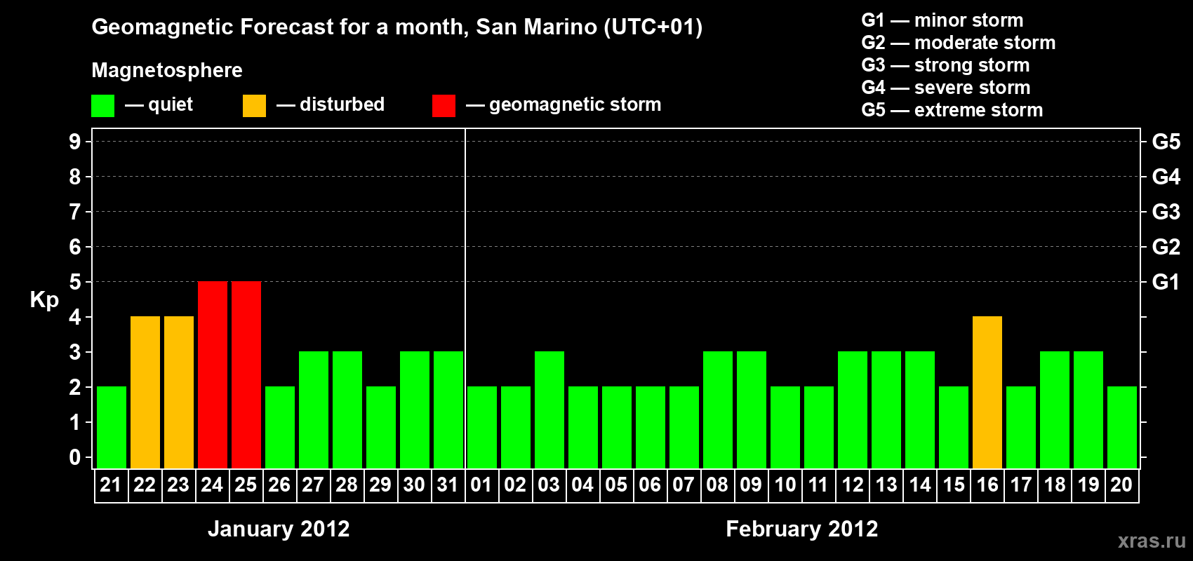 Geomagnetic storm forecast in San Marino for Jan 21, 2012