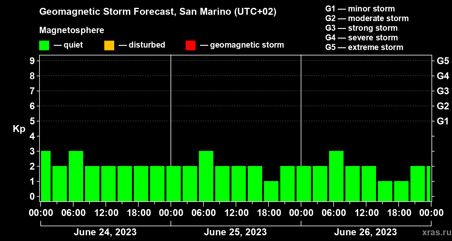 Geomagnetic storm forecast in San Marino for Jun 24, 2023